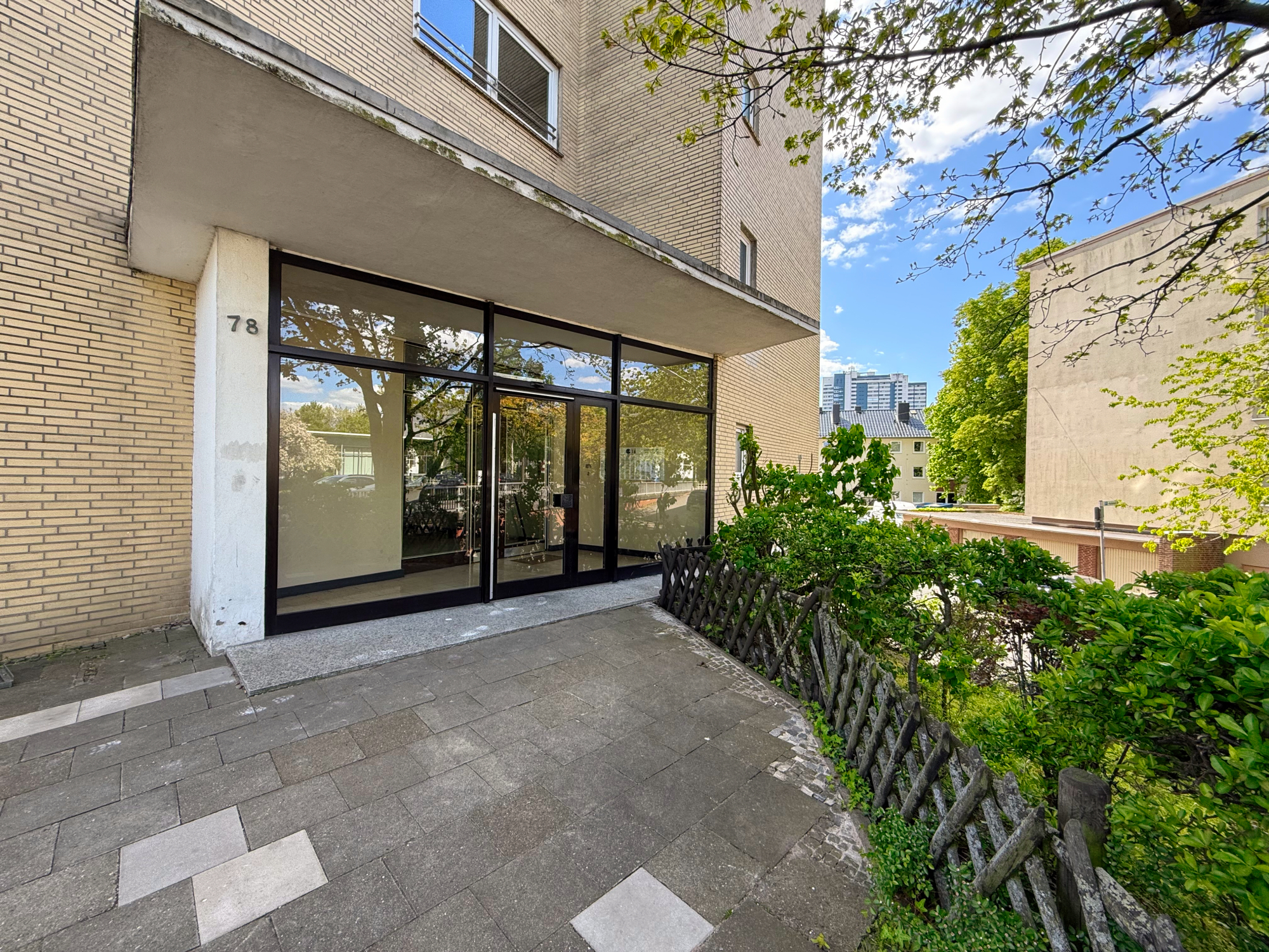 Diese großzügige 2-Zimmer-Wohnung im 5. Obergeschoss eines gepflegten Hochhauses aus dem Jahr 1960 bietet eine beeindruckende Aussicht über die Dächer der Stadt bis hin zum Columbus Center. Mit einer Wohnfläche von ca. 76 m² und einer durchdachten Raumaufteilung überzeugt sie durch ihr Potenzial zur individuellen Gestaltung.