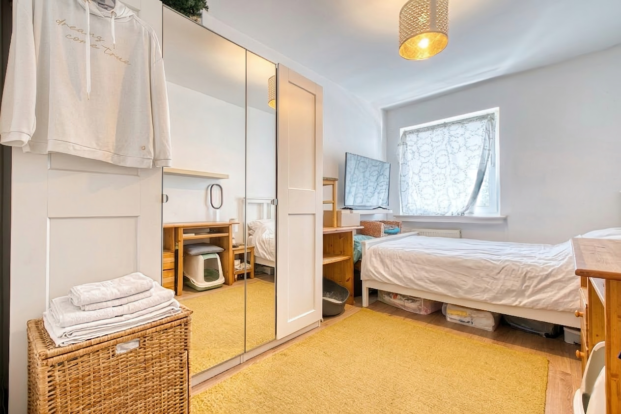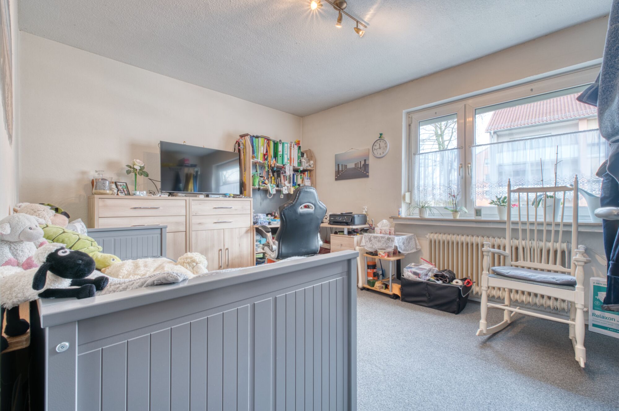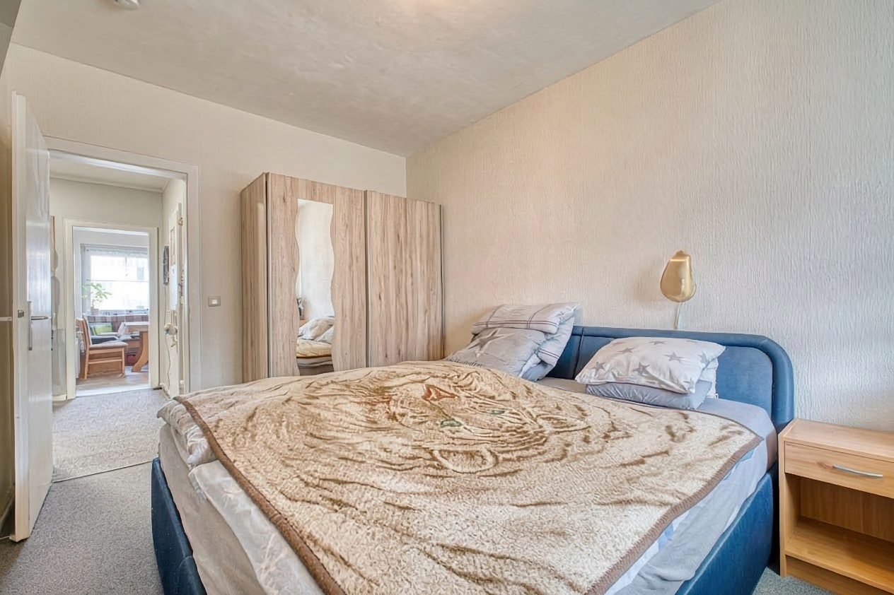 Das Schlafzimmer bietet Platz für ein Doppelbett und einen Kleiderschrank. Ein weiteres Zimmer eignet sich ideal als Büro oder Kinderzimmer.