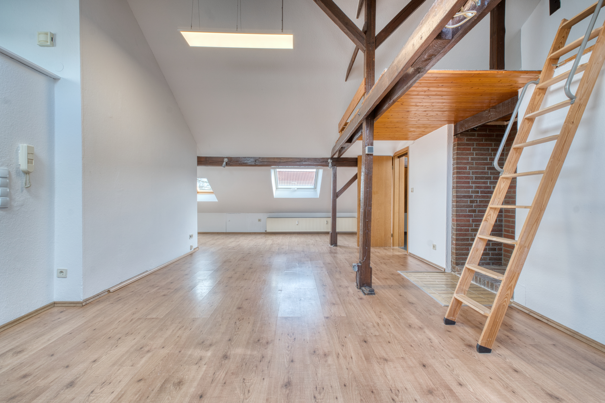 Das ausgebaute Dachgeschoss überzeugt mit wohnähnlichem Charakter und einem großzügigen Studiozimmer. Durch mehrere Dachfenster wirkt der Raum besonders hell und freundlich.