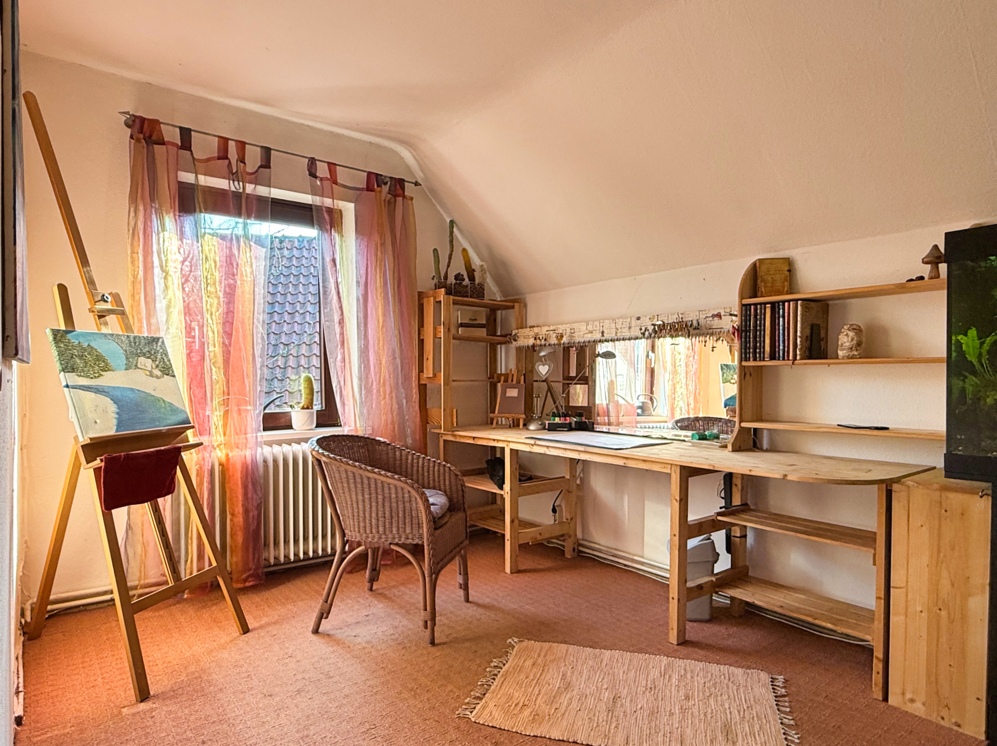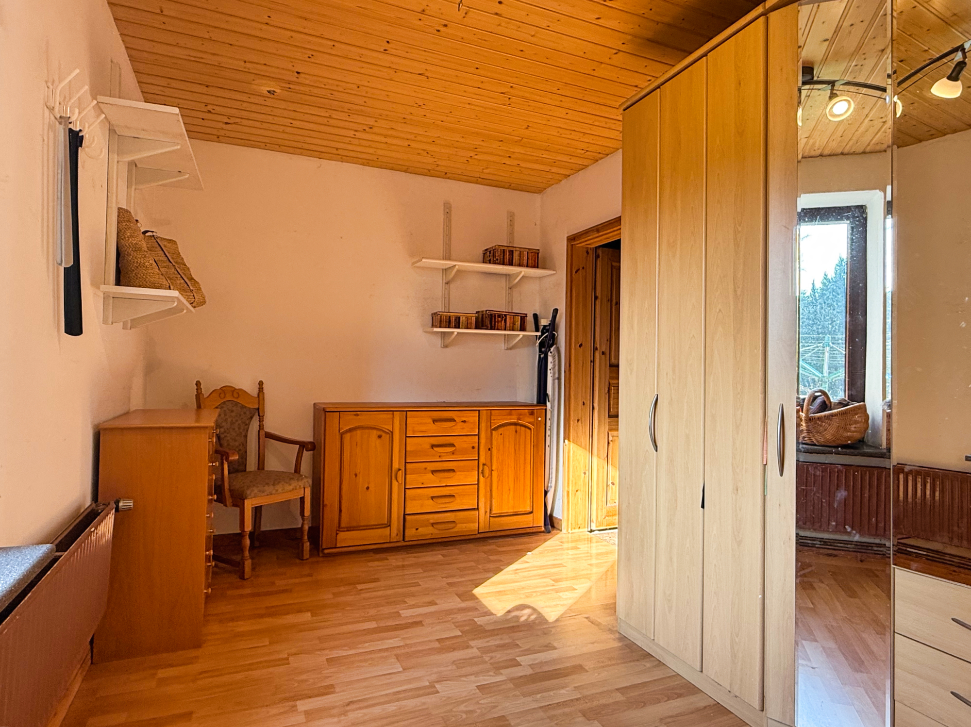 Die großzügige Ausbaureserve im Obergeschoss bietet zahlreiche Gestaltungsmöglichkeiten. Neben einem weiteren Schlafzimmer könnte hier eine vollwertige Wohnung mit eigenem Bad, Küche und allen notwendigen Annehmlichkeiten eingerichtet werden. Diese Option macht das Haus ideal für ein Mehrgenerationenmodell, bei dem jeder seinen eigenen Bereich genießen kann, ohne auf Privatsphäre verzichten zu müssen.